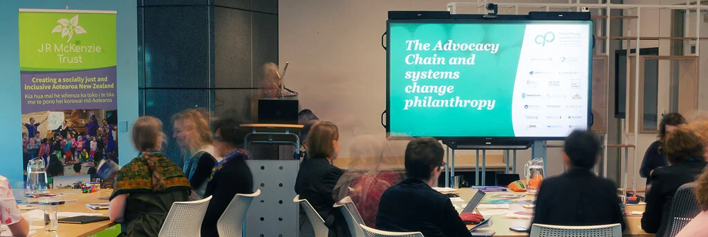 The J R McKenzie Trust hosted a breakout session on The Advocacy Chain and Systems Change. The discussion panel consisted of Kat’z Ruatara (Merge Community, Lifewise), Genevieve Timmons (Philanthropic Executive) Sarah Wickham (Philanthropy Australia) and Eileen Kelly (J R McKenzie Trust).