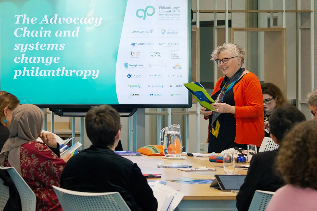 She led the discussion on the Advocacy Chain and described it as a helpful way for philanthropic organisations to understand the activities that can contribute to effective advocacy. It illustrates the range of options available for donors to invest their philanthropic dollars:
